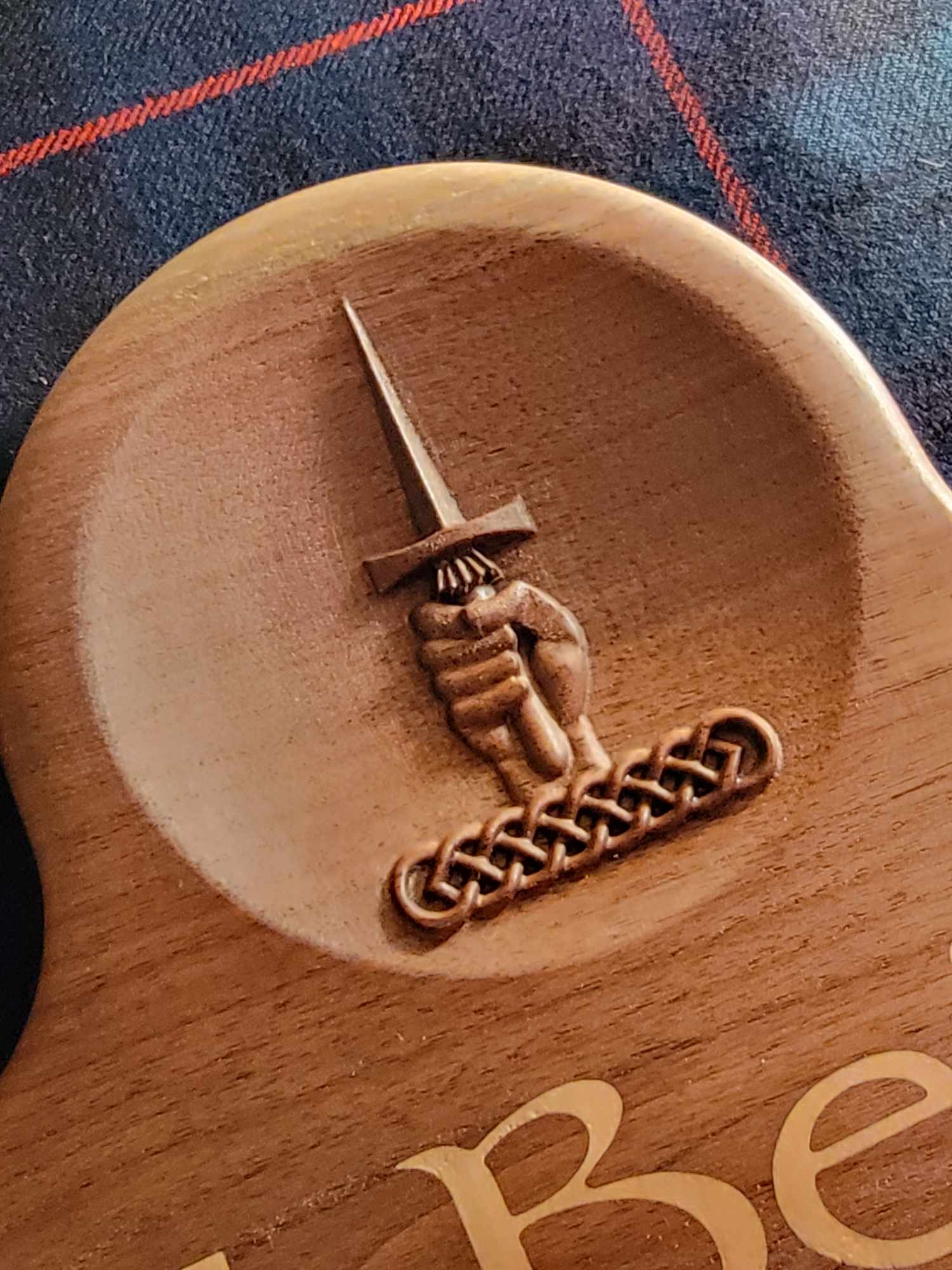 All Family Plaques are made from solid walnut. The motto inlay is made from maple.